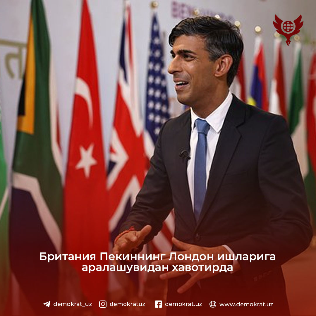 Британия бош вазири Риши Сунак Лондон Пекиннинг мамлакат ишларига аралашувидан хавотирда эканини тан олди. Бу ҳақда у G20 саммити чоғида Хитой Халқ Республикаси Давлат кенгаши бош вазири Ли Цянга маълум қилди, деб ёзмоқда Telegraph газетаси.