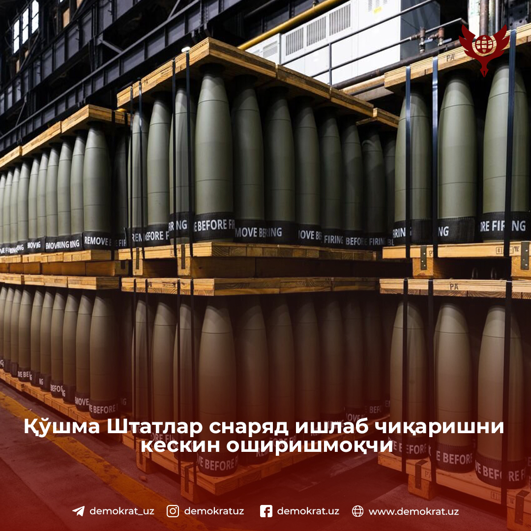 Қўшма Штатлар 2025 йилда 155 миллиметрли артиллерия снарядларини ойлик ишлаб чиқаришни 2025 йилда 100 мингтагача оширишни режалаштирмоқда, деди Пентагон вакили.