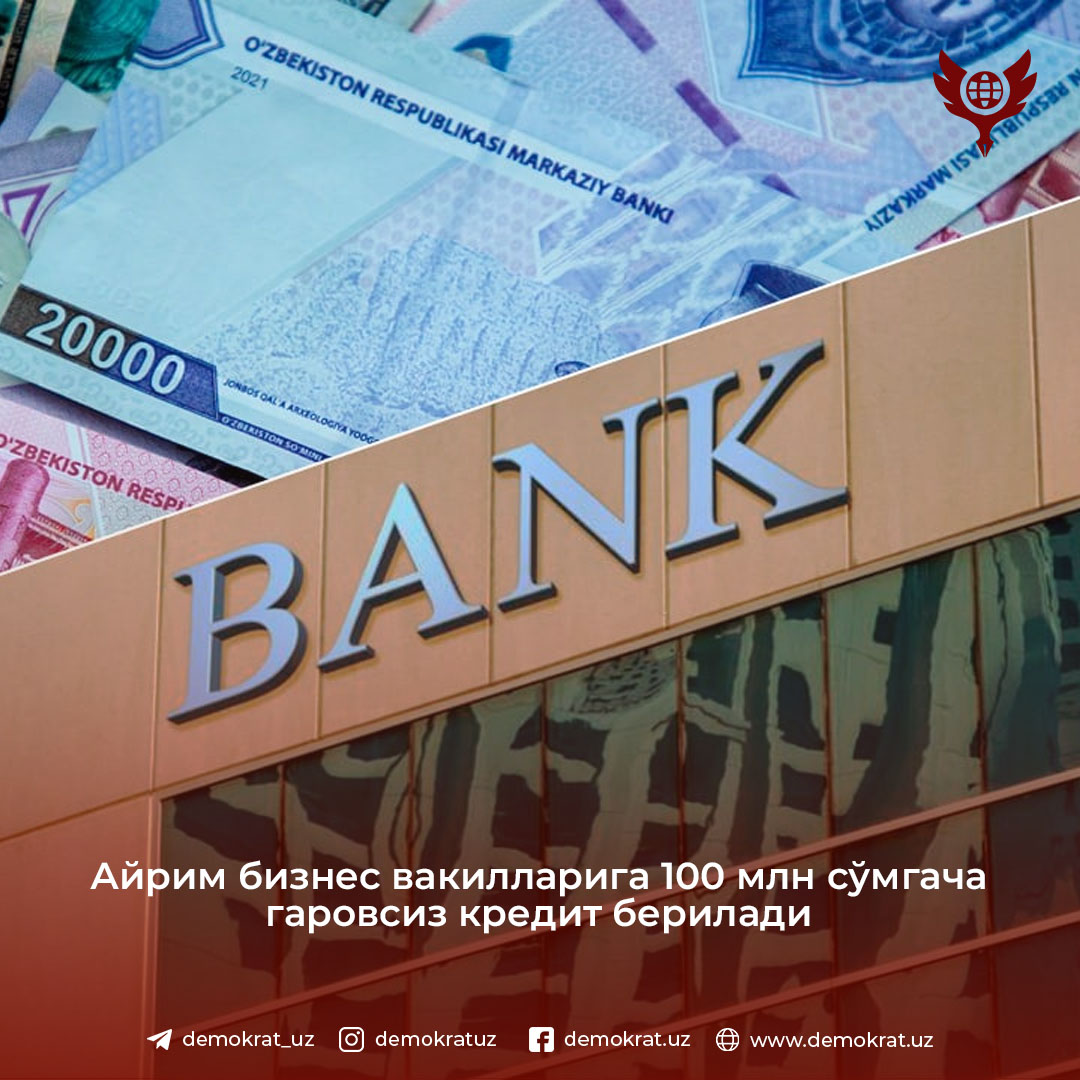 Бунда, 100 миллион сўмгача кредитларни гаровсиз, 150 миллион сўмгача кредитларни гаров талаби 50 фоизгача пасайтирилган ҳолда ажратиш имконияти назарда тутилади;