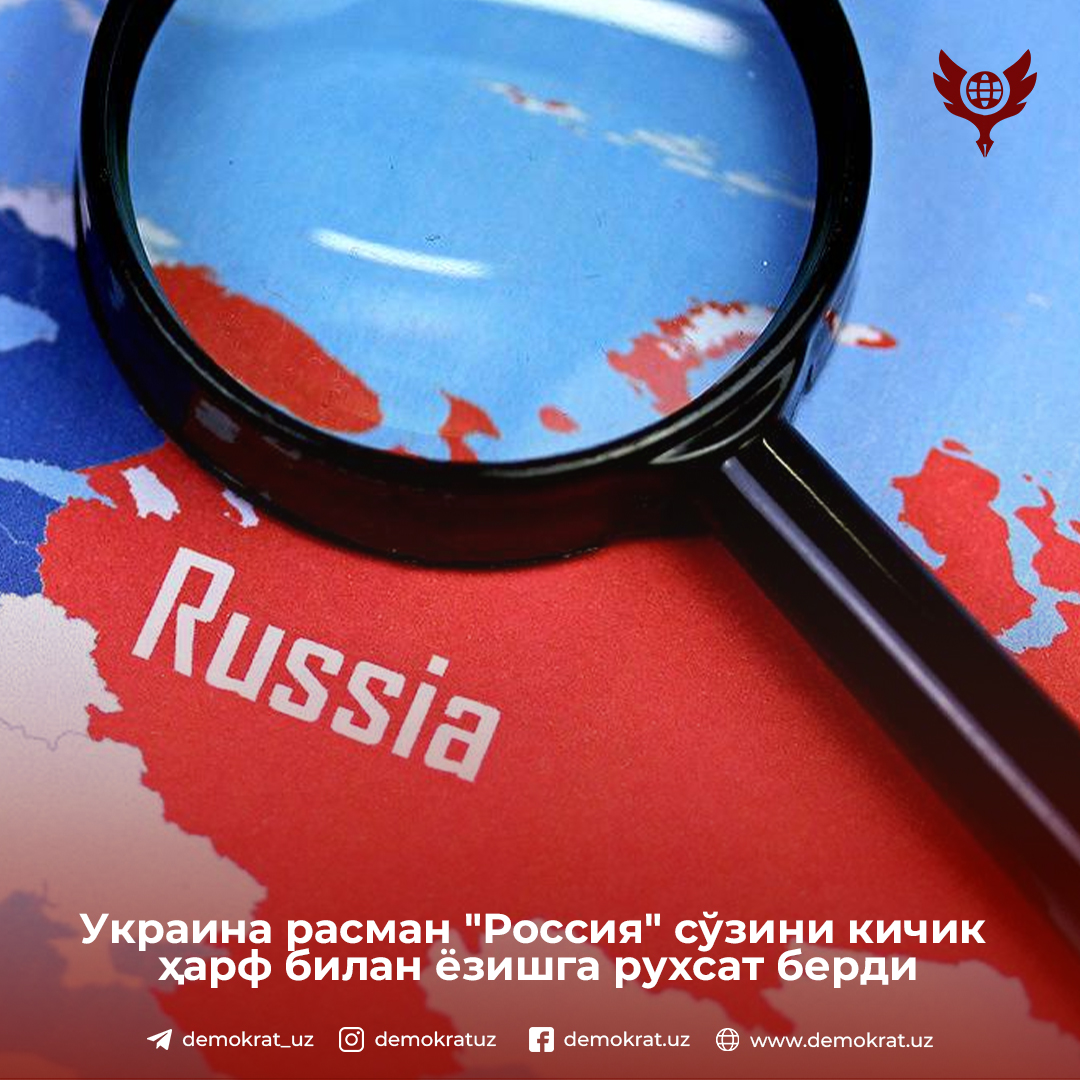 Украина тил стандартлари миллий комиссияси “Россия” сўзини ва Россия Федерацияси билан боғлиқ бошқа тушунчаларни кичик ҳарф билан ёзишга рухсат берди, деб хабар беради агентлик.