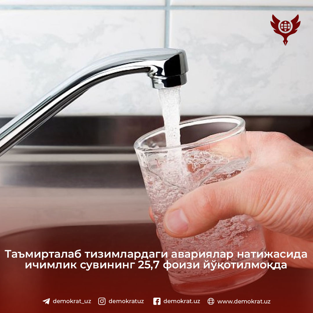 Ўзбекистонда таъмирталаб тизимларда вужудга келаётган авариялар натижасида ичимлик сувининг 25,7 фоизи йўқотилмоқда.
