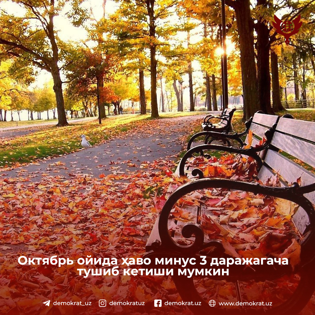 Қорақалпоғистон, Хоразм вилояти ва Навоий вилоятининг шимолий туманларида октабр ойининг иккинчи қисмида ҳаво ҳарорати 0—3° гача пасайиб кетиши мумкин.