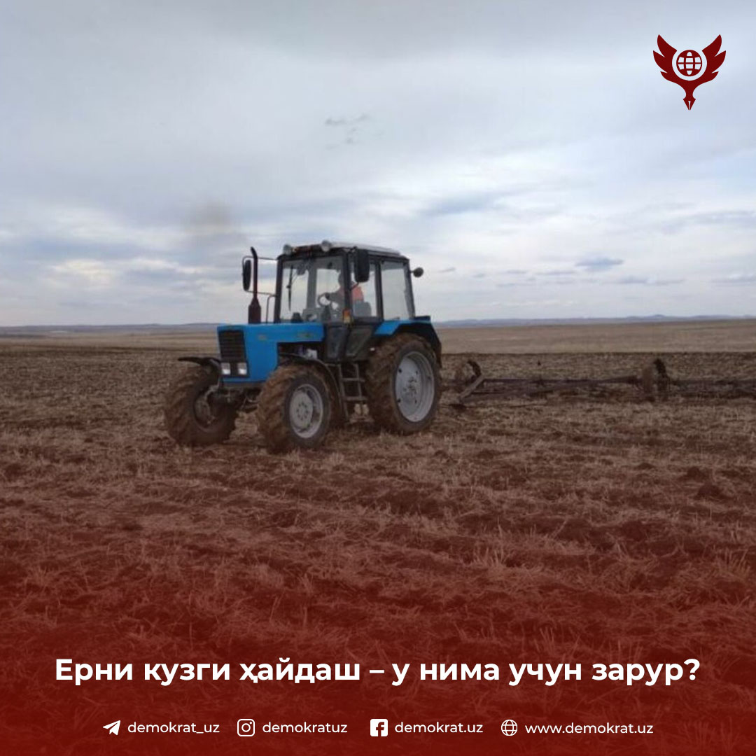 Қишлоқ хўжалиги вазирлиги ахборот хизмати маълум қилишича, ерни экин мавсумига сифатли тайёрлаш экинлар ҳосилдорлигини ошириш ва қишлоқ хўжалиги ўсимликлари нобуд бўлишини камайтириш имконини беради.