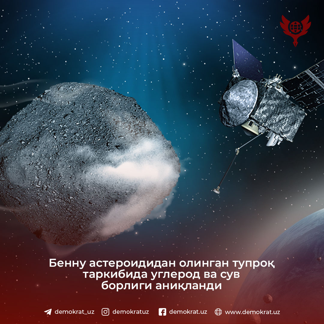 NASA сайёрамиздан 3 миллиард км узоқликда жойлашган Бенну астероидидан уч ҳафта олдин Ерга олиб келинган тупроқ таҳлилининг биринчи натижаларини эълон қилди. Юлдузлараро чангнинг кимёвий таркибини ўрганиш натижалари унинг таркибида кўп миқдорда углерод ва сув борлигини кўрсатди, деб хабар берди BBC News.