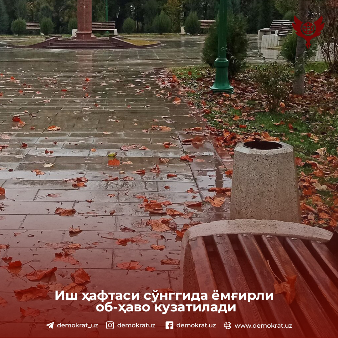 Ўзгидромет хабарига кўра, 24-25 октябрь кунлари Ўзбекистоннинг барча ҳудудларида ҳаво бироз булутли бўлади, ёғингарчилик кутилмайди. Ҳаво ҳарорати кўтарилади ва ҳафта ўртасига келиб, кундуз кунлари +22…+25 даража, жанубда +27 даража бўлади.