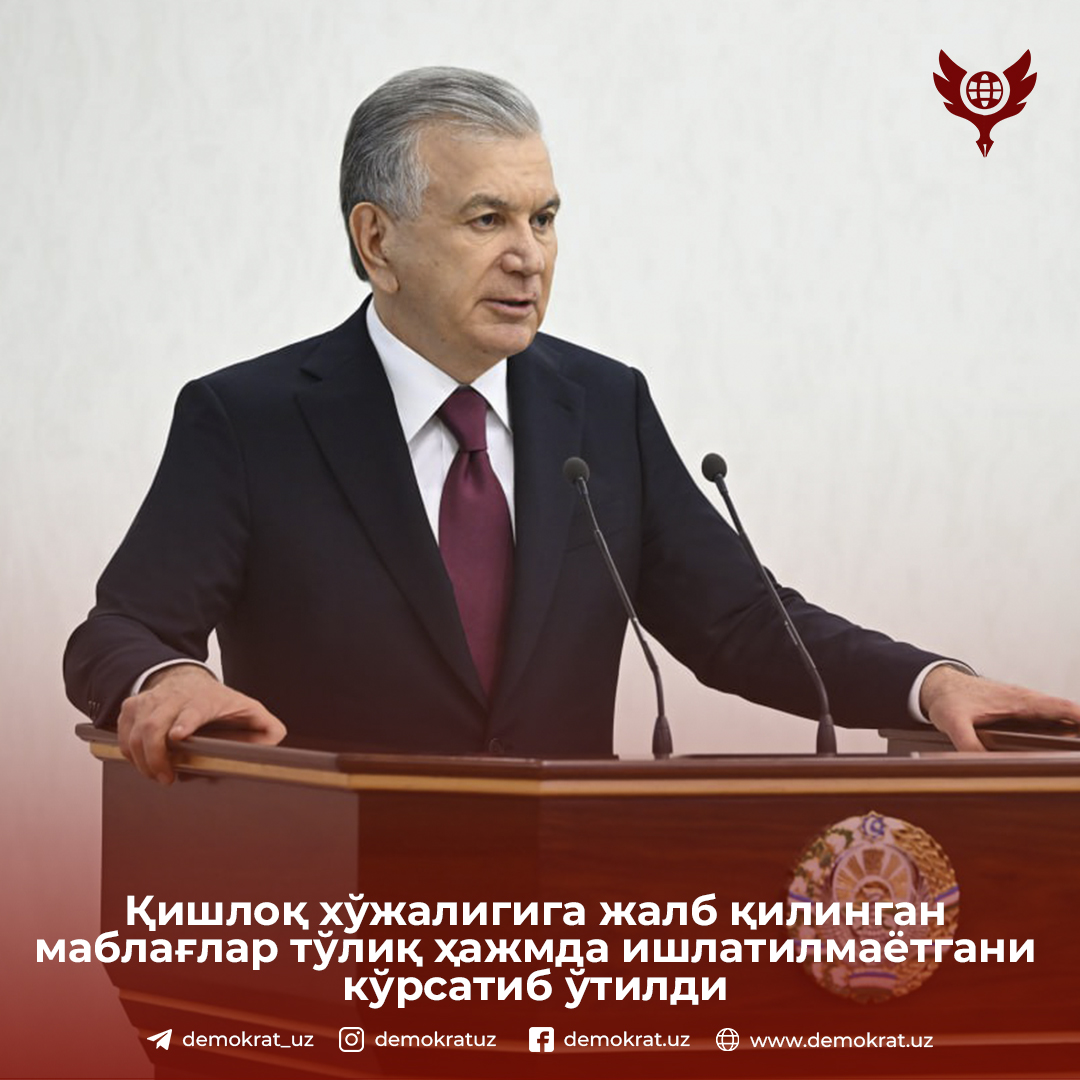 Халқаро молия ташкилотларидан қишлоқ хўжалигига жалб қилинган маблағлар тўлиқ ҳажмда ишлатилмаётгани кўрсатиб ўтилди.