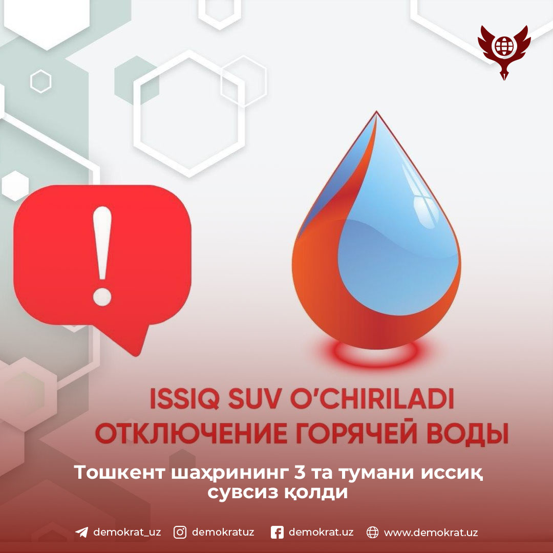 Бугун “Ўзбекистон темир йўллари” АЖга қарашли “Чуқурсой” подстанциясида юзага келган носозлик туфайли, Юнусобод туманида жойлашган 4-қозонхонанинг 2 навбати ўчирилган. Шу сабабли, қуйидаги манзилларда иссиқ сув ва иссиқлик таъминоти вақтинча бўлмайди: