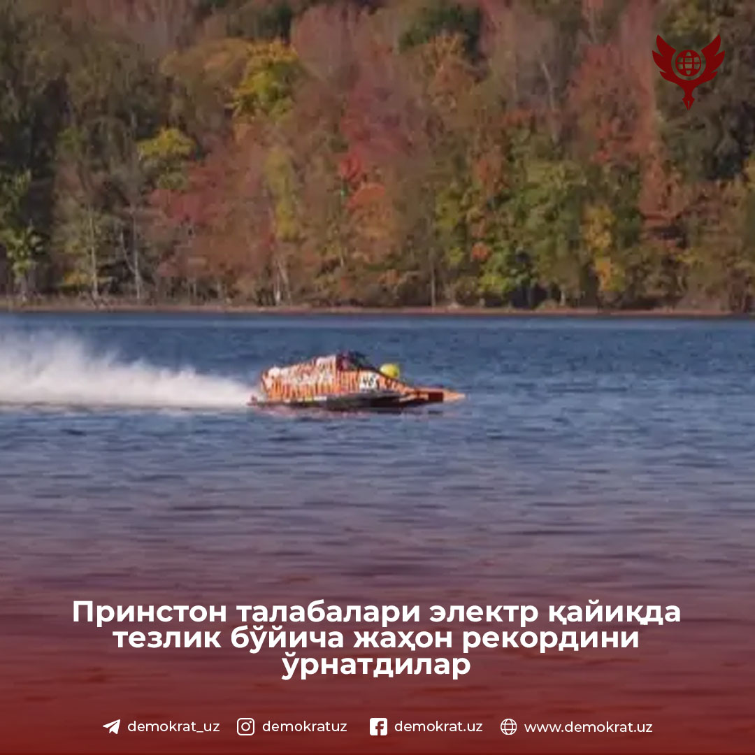 Принстон университети талабалари жамоаси Америка электр транспорт воситалари ассоциацияси ҳомийлигидаги мусобақада электр қайиқлар тезлиги бўйича жаҳон рекордини ўрнатди. Бу ҳақда techcult.ru сайтида маълум қилинган.