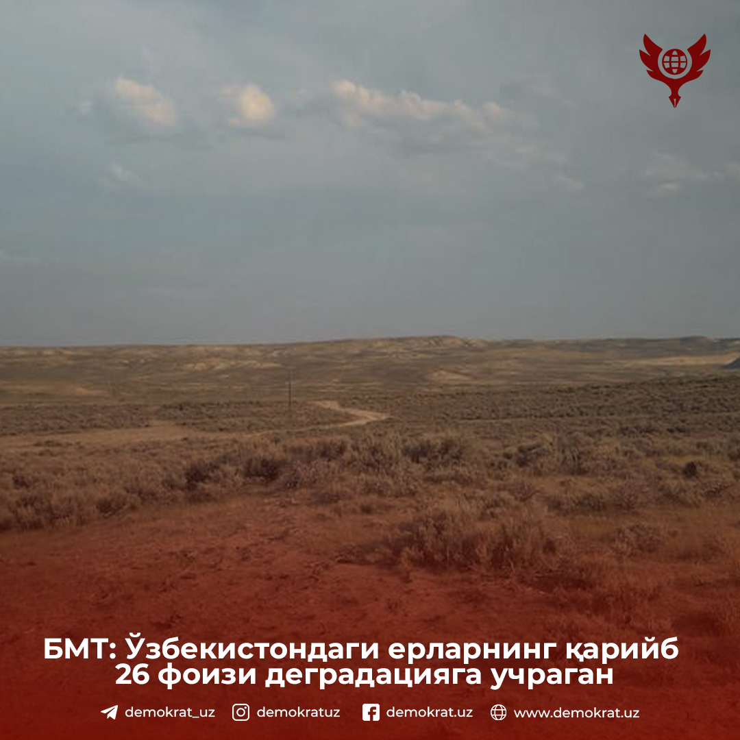 Ўзбекистонда деградацияга учраган, яъни фойдаланишга яроқсиз ерлар улуши камайди. Илгари бу кўрсаткич 30 фоизни ташкил этган бўлса, ҳозир 26 фоизга тушиб кетди. Бироқ, бу Марказий Осиёнинг бошқа ҳар қандай давлатидагидан ҳам кўпроқ, дея хабар беради Ўзбекистон Экология, атроф-муҳитни муҳофаза қилиш ва иқлим ўзгариши вазирлиги БМТ маълумотларига таяниб.