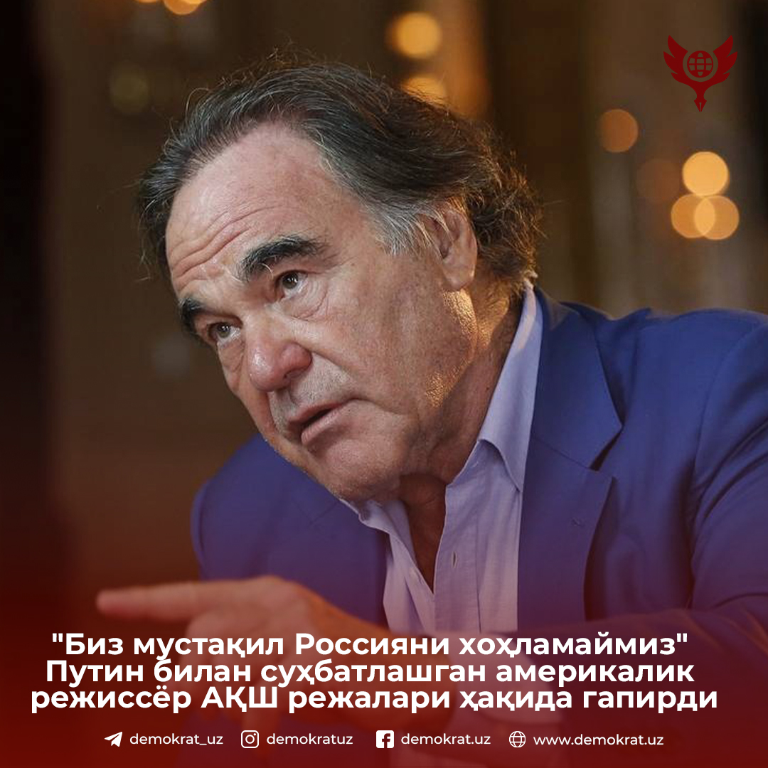 Машҳур америкалик режиссёр Оливер Стоун АҚШни Россияни суверенитетдан маҳрум қилиш ва мамлакат ресурсларини тортиб олишга интилаётганликда айблади. Унинг фикрича, америкаликлар Россиянинг оёққа туришини истамаяпти, Россия табиий бойликларини тортиб олмоқчи.