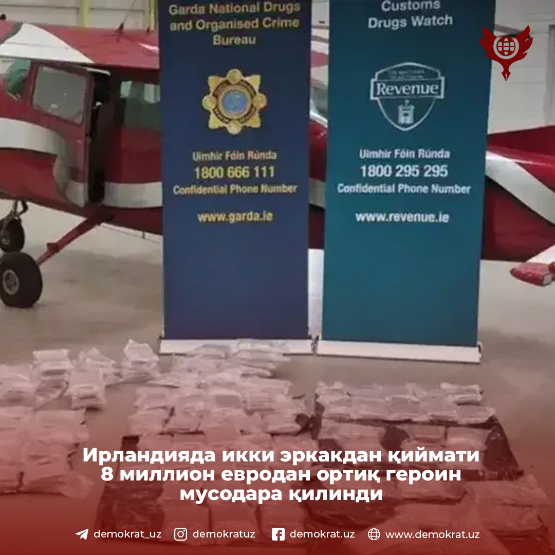 Ирландияда икки эркакдан қиймати 8 миллион евродан ортиқ героин мусодара қилинди