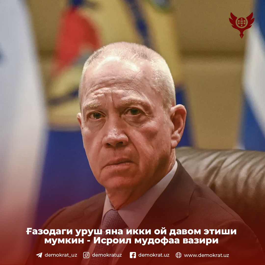 Исроил мудофаа вазири Йоав Галлант брифинг чоғида Ғазо секторидаги уруш яна икки ой давом этишини айтди, деб хабар бермоқда ABC News.