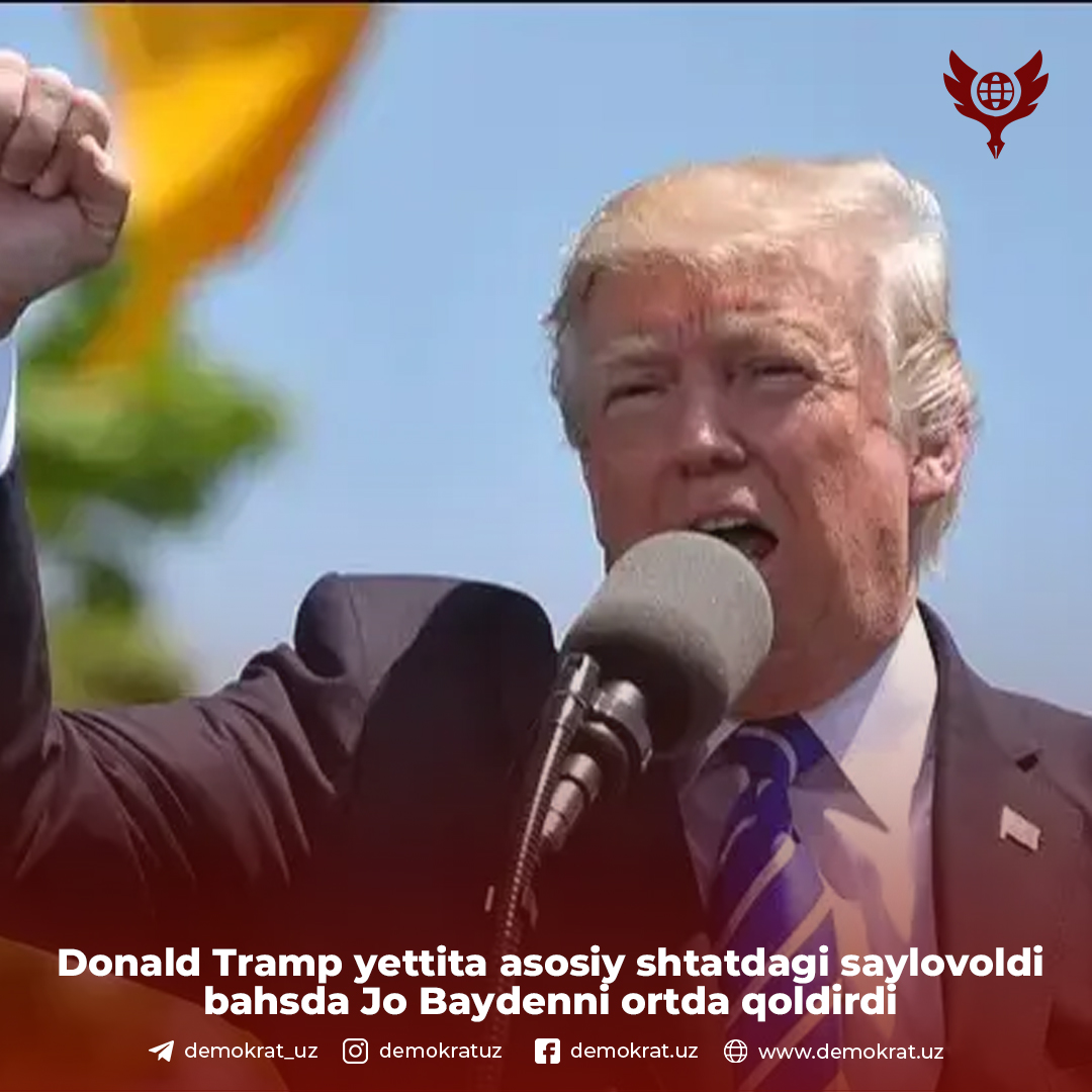 Bloomberg agentligining yangi so‘rovi AQSHning sobiq prezidenti Donald Tramp 2024-yilgi saylovoldi bahsda yettita asosiy shtatda Jo Baydenni ortda qoldirganini ko‘rsatdi, deb xabar bermoqda USA Today.