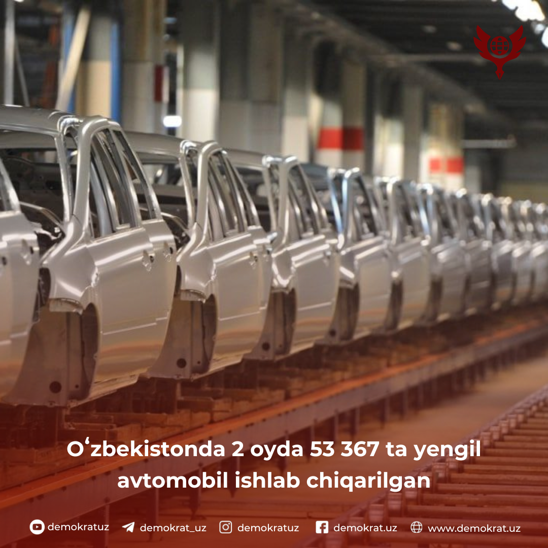 Statistika agentligining dastlabki maʼlumotlariga koʻra, 2024-yilning yanvar-fevral oylarida Oʻzbekistonda 53 367 ta yengil avtomobil (maxsus yengil avtomobillardan tashqari) ishlab chiqarilgan.