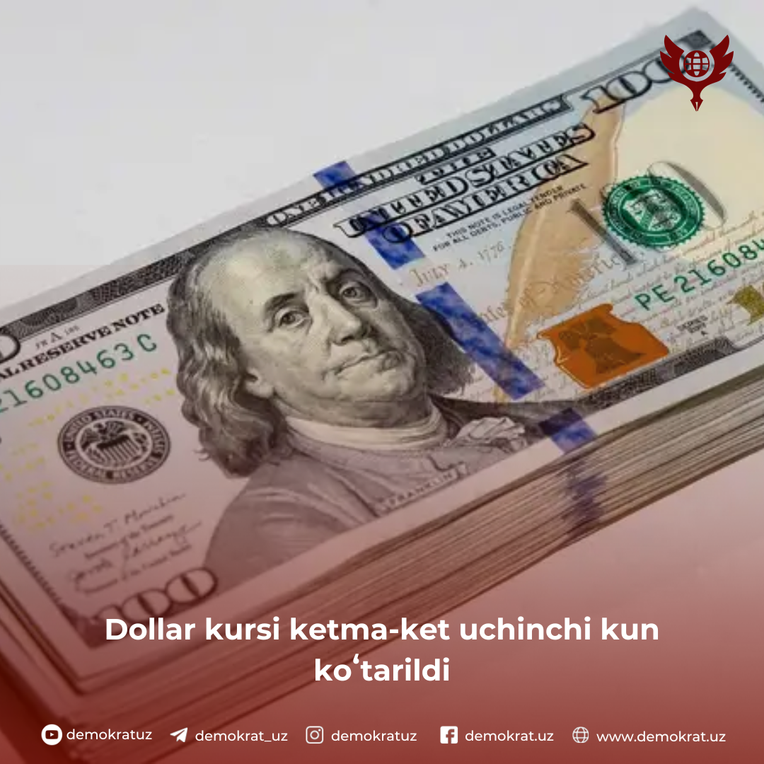 Oʻzbekistonda dollar kursi koʻtarildi, deb xabar bermoqda Markaziy bank matbuot xizmati.