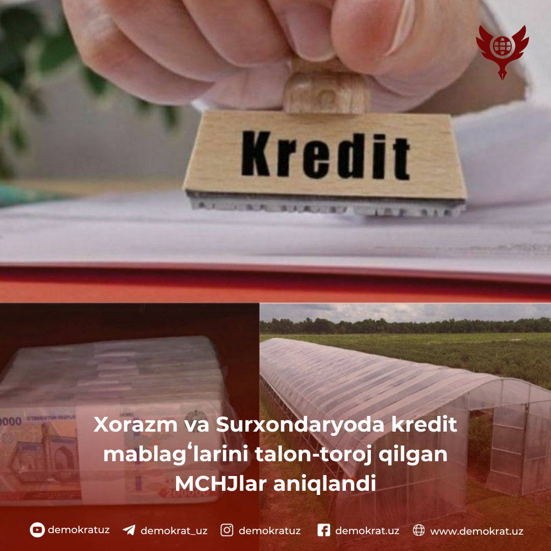 Xorazm va Surxondaryoda kredit mablagʻlarini talon-toroj qilgan MCHJlar aniqlandi