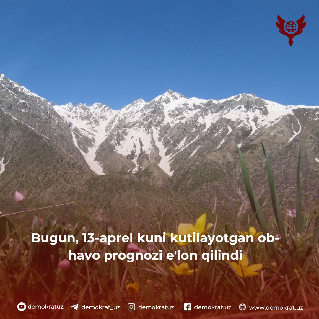 Havo biroz bulutli bo‘ladi, ba’zi joylarda yomg‘ir yog‘adi, ayrim joylarda kuchli bo’lishi mumkin, baland tog‘larda yog‘ingarchilik (yomg‘ir, qor) bo‘ladi. Sel-suv toshqin hodisalari yuzaga kelishi mumkin. Qor ko‘chishi xavfi bor. Sharqiy shamol yo‘nalishini o‘zgartirib, g‘arbdan 7-12 m/s tezlikda esadi, ba’zi joylarda 15-20 m/s gacha kuchayishi mumkin. Harorat kechasi 5-10° iliq, kunduzi 10-15° iliq bo‘ladi.