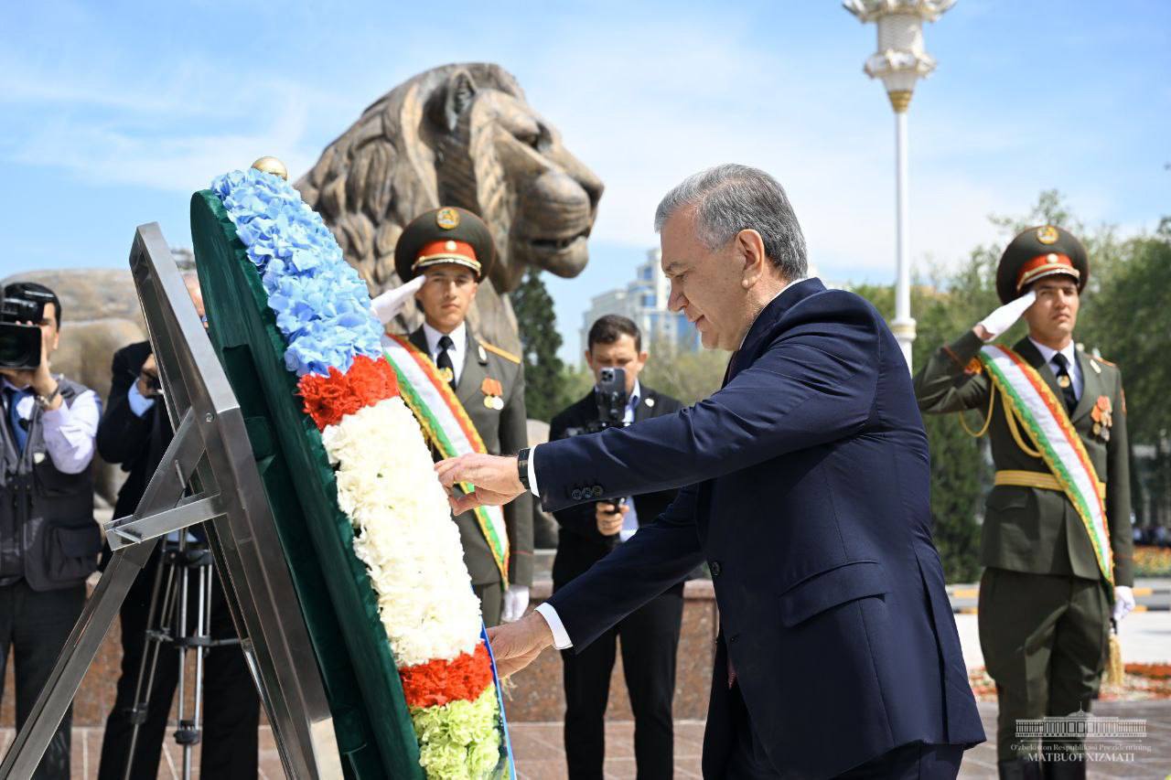 So‘ng Prezidentimiz “Do‘stiy” maydoniga tashrif buyurib, Ismoil Somoniy haykali poyiga gul qo‘ydi.