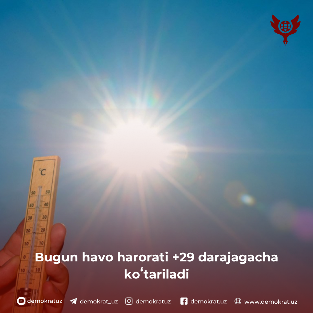Oʻzgidromet bugun, 21-aprel kuni mamlakat boʻylab havo harorati qanday boʻlishi haqida maʼlumot berdi. Unga koʻra: