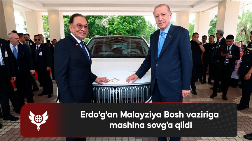 Prezident Rajab Toyib Erdo‘g‘an bugun Kuala-Lumpurga rasmiy tashrifi chog‘ida Malayziya Bosh vaziri Anvar Ibrohimga TOGG markali zamonaviy turk elektromobilini sovg‘a qildi, deb xabar berdi “Anadolu” agentligi.