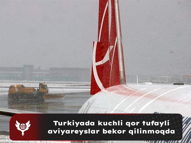 19-21 fevral kunlari kuchli qor yog‘ishi munosabati bilan Istanbul xalqaro aeroporti va Sabiha Go‘kchen aeroportlarida O‘zbekistondan hamda boshqa mamlakatlardan yuzlab aviareyslar bekor qilinmoqda, deb mamlakatning Transport va infratuzilma vazirligiga tayanib, “Anadolu” xabar berdi.